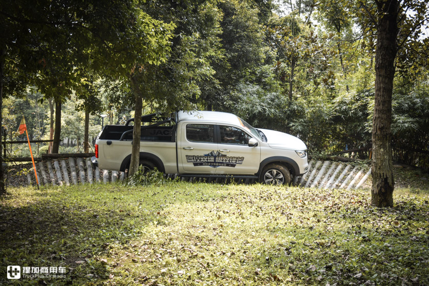 实际道路环境中帅铃皮卡表现如何呢,我们驾驶帅铃T8前往一条森林越野赛道一试便知。森林越野赛道设有泥泞路、斜坡路、双驼峰、枕木路、V型沟、交叉轴、等二十多项障碍,许多地方刚好只够车辆通过,方向打早或打晚一点都过不去,很有挑战性。