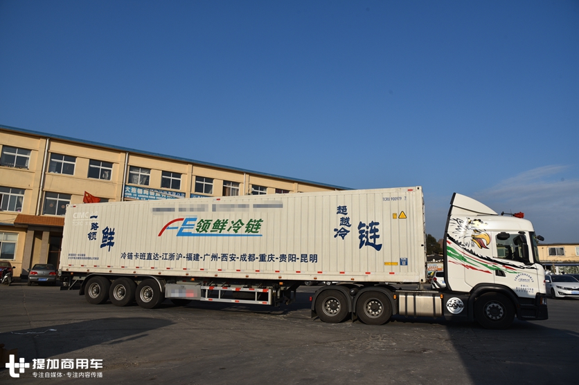 这两句印在车身上的广告语一点都不夸张,反而很好地阐释了领鲜冷链的核心理念,让我们回到文章开始那句话,“工欲善其事,必先利其器”,我们可以看到领鲜冷链依托大连这块儿风水宝地,确实把这句话理解的十分透彻并且执行了。车选斯堪尼亚,出勤率高,燃油经济性好,还能为领鲜带来许多意想不到的品牌溢价;挂车选大单胎,空气悬架,不仅节油,货损也更小,这在整个冷链行业内属最为先进的用车理念;另外,领鲜还是少数能达到超低温(-40°)的冷链企业,要知道,超低温温度越低,意味着投入更大,但品质也是最好的。终上所述,更超前的经营理念,过硬的冷链装备,专业的冷链服务,造就了今天的FE领鲜冷链。
