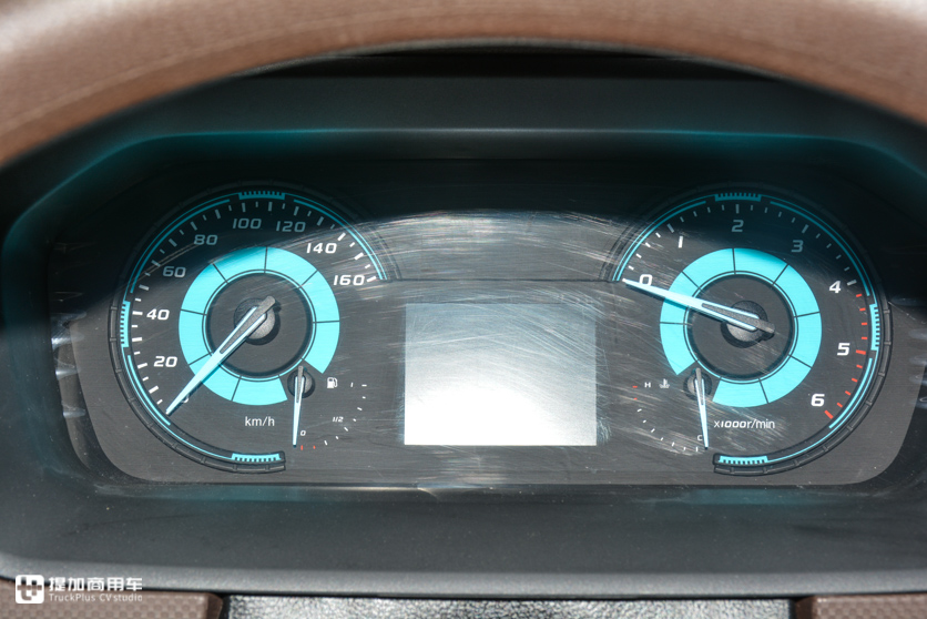 仪表盘加入了部分蓝色装饰,整体造型还是简洁易读,中间有一个液晶显示屏。