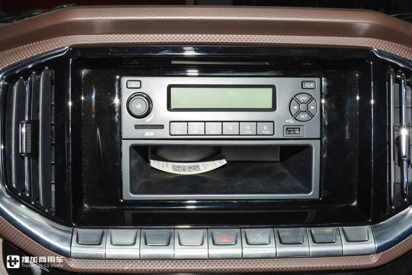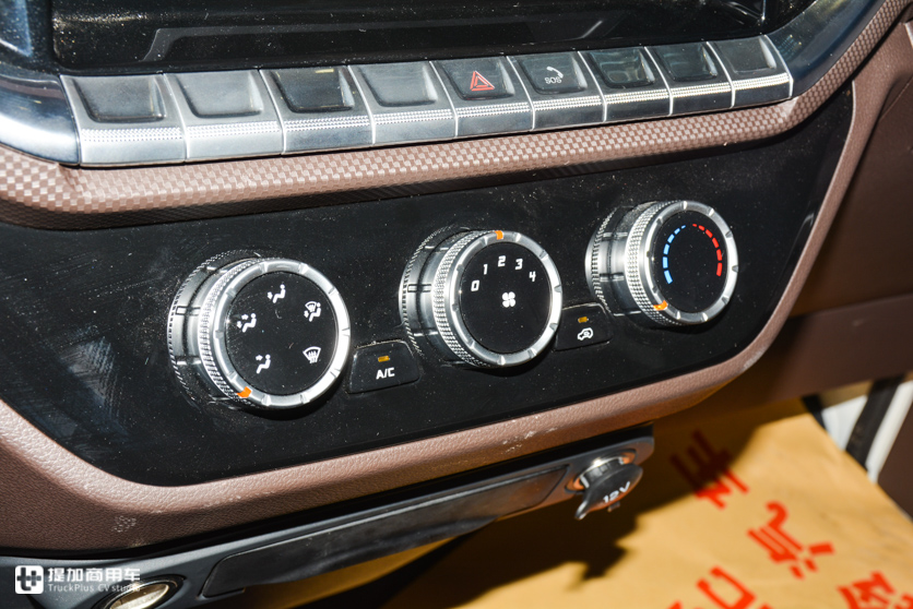 内饰设计顺达国六车就彻底告别了以前五十铃风格的简约内饰设计,开始走向了乘用车化的风格。内饰主色调从传统的黑灰色变成了深咖色,中控台对称式布局。在细节上江铃做的很讲究,中控台中间部分做成亮面黑色钢琴烤漆,环绕空调出风口是银色的装饰条,与银色的钢琴式按键连为一体,看上去会比较精致。