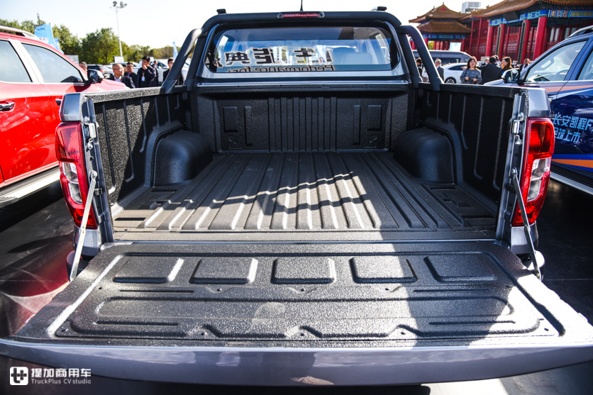 底盘部分是凯程F70一大卖点,PSA那边的雪铁龙有“底盘大师”称号,对底盘的调校非常拿手。非承载式车身结构,前悬采用双横臂前悬架,后悬有板簧悬架和五连杆悬架两种配置。有一点需要特别指出,凯程F70拥有3.5吨的拖拽能力,并在研发的时候做了拖车摇摆测试,目的是确保皮卡加挂拖车之后的安全性和行驶稳定性,想要拿皮卡拖摩托车、房车等用途的,肯定会很喜欢这种设计。