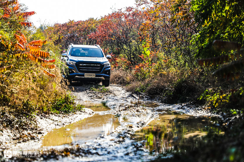 懒龙坡可以理解为连贯的起伏路面,坡比较大,车轮经过的时候不会同时接触到地面,这样就有轮胎会离地失去附着力,同时车身扭曲,在这种路面下很考验车辆的四驱性能、车身刚性和动力响应。四驱性能和车身刚性比较好理解,之所以强调动力响应,是因为懒龙坡也有点陡,下去时需要松油门降低速度,下完了坡又马上面临爬坡,此时就需要踩油门让动力迅速迸发出来爬过小坡。这方面凯程F70柴油版还是很不错的,发动机1000转/分钟就能输出248Nm的扭矩,轻踩油门踏板发动机转速就能轻松攀升到2000转/分钟,响应很及时,动力衔接顺畅。