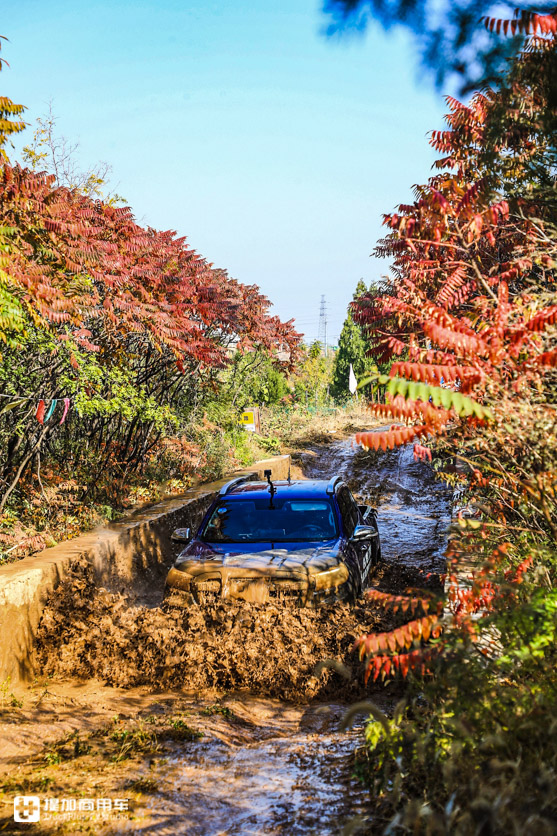 侧倾弯道路段车辆一侧会驶上弯道斜坡,由于弧面影响,在部分情况下一条对角线上的车轮会离开地面失去附着力,倾斜的角度又容易引发车辆侧滑,综合考验车辆四驱系统、悬架和轮胎抓地力。驾驶凯程F70经过这一段侧倾路的时,车身没有一点滑动,四驱模式下一口气就顺利通过,悬架本身提供的支撑力也足够强,车身没有严重侧倾。本来是一个难度较高的项目,开着凯程F70都不觉得难。