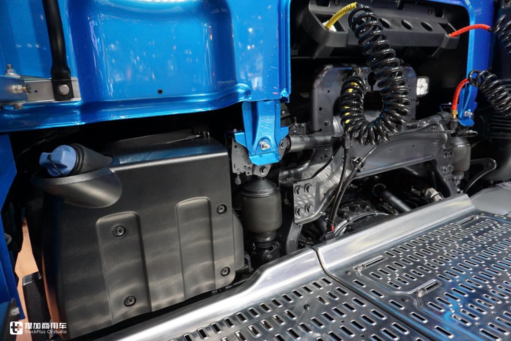 驾驶室4气囊全悬浮减震,尿素注入口位于气囊旁边。