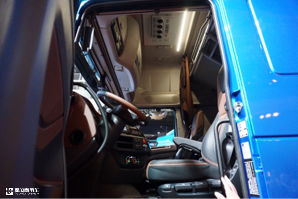 配备新一代采埃孚TraXon自动变速箱,展车的是标配的12档变速箱。另外可选16档变速箱。