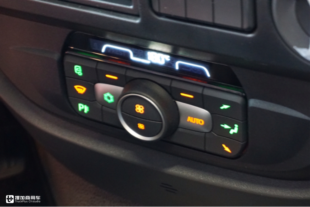 空调系统操控面板的设计有点像小轿车上的音响系统。旋钮控制风速,旋钮中间按键控制温度,可以说是相当好评了。
