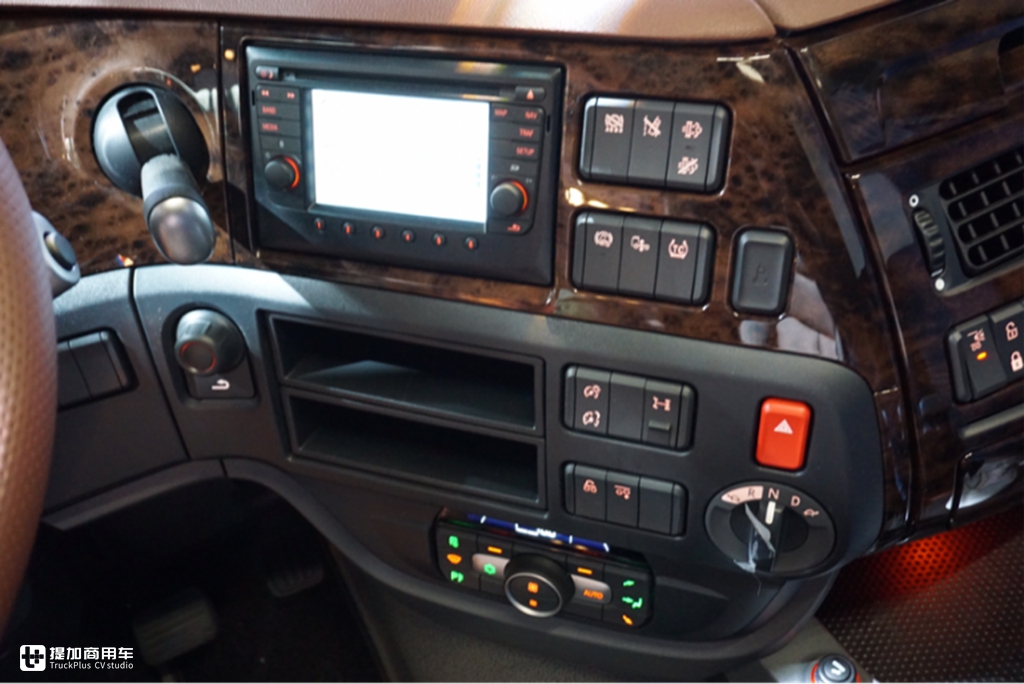 港湾式中控台设计几乎是多数重型卡车的选择。因为它有一个优势,尽可能低方便驾驶者操控车辆的各个功能。