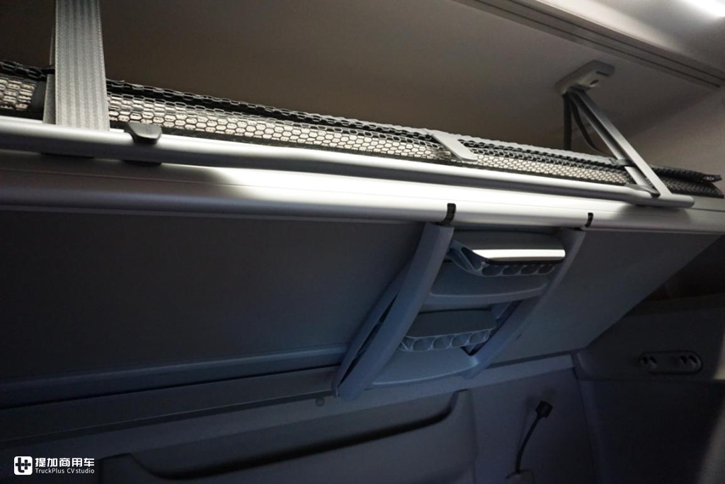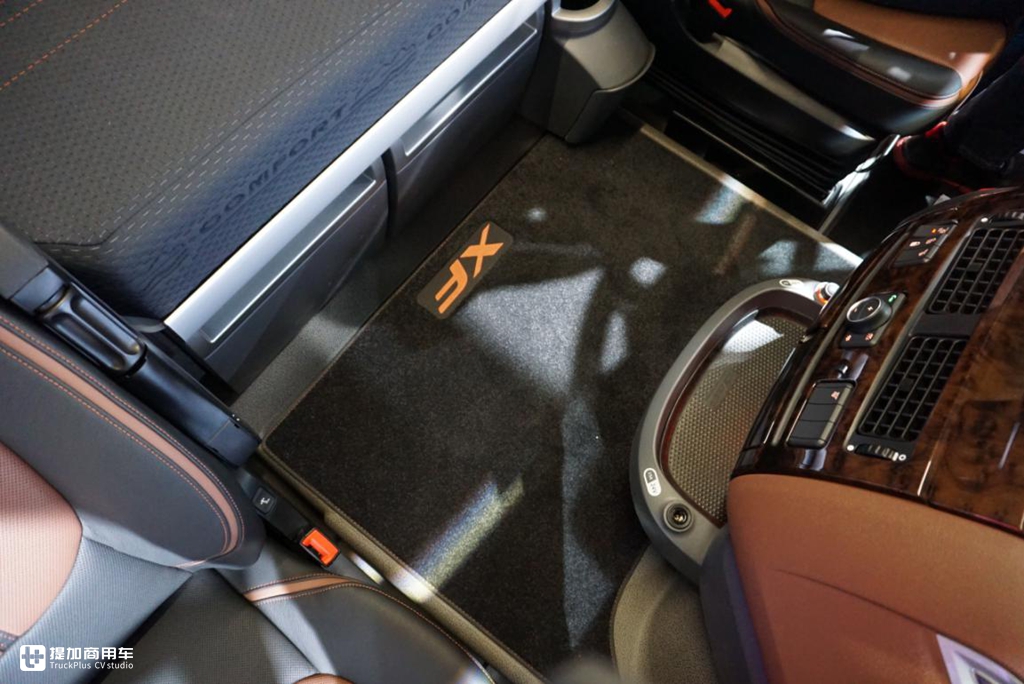 把卧铺下方的储物格都收纳好,完整的驾驶室中央平地板浮现在眼前。平地板的驾驶室虽说不是跑长途的必要配置,但是大空间可以令到整个长途航行的路程司机更加舒适。