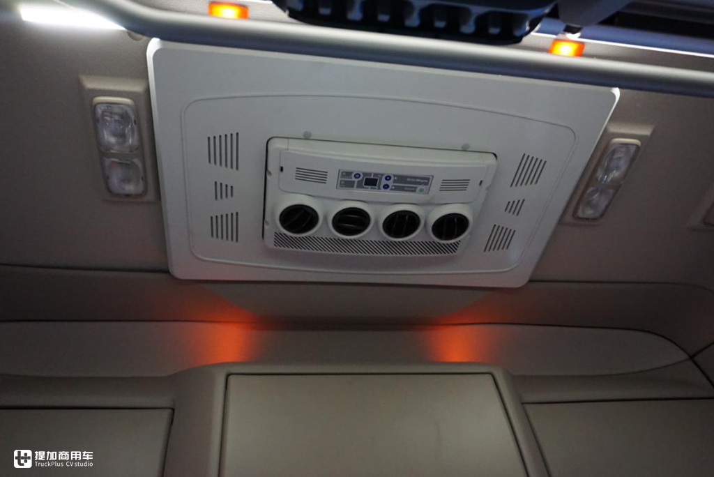 车顶天窗位置是一个独立驻车空调,两侧为车室内照明灯。