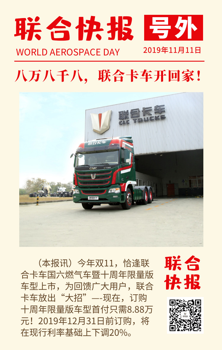号外 | 双11,联合卡车“放大招”!八万八千八,联合卡车开回家~ 编辑张靖 卡车2019年11月11日 15:4811.29W0 牛牛牛牛牛 双11,买一台联合卡车在手 啥都能说有就有! 中集联合卡车(22)联合U+600(2)本文来源联合卡车,经授权后由编辑张靖发布,观点不代表提加商用车网的立场,转载请联系原作者。编辑张靖提加商用车小编,还请大家多指教!6.22K893.26M39.57W