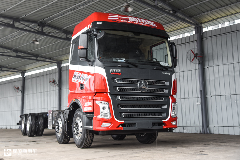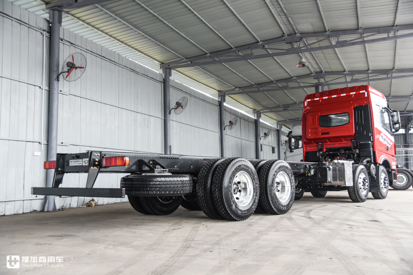 三一俊领版载货车卖点除了价格便宜还有轻量化,底盘自重9.4吨,8x4载货车总质量是不能超31吨(空气悬架32吨),即使加上上装重量,大概还能装近19吨货物,自重在行业内属于不错的数据了。