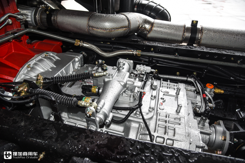 跟发动机匹配的是法士特的手动12挡变速箱(12JSDX240TA),这款变速箱用的也是铝合金外壳轻量化设计,这就能为整车减重一部分。
