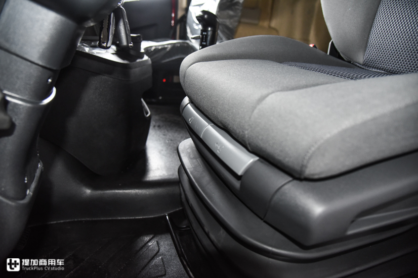 主驾驶气囊减震座椅能够支持调节的功能除了靠背等,侧面有一个手动腰部支撑调节功能,坐垫的长度也是可以调节的,这一项配置我觉得在很多气囊减震座椅上面都没有,整体配置还是很不错的。