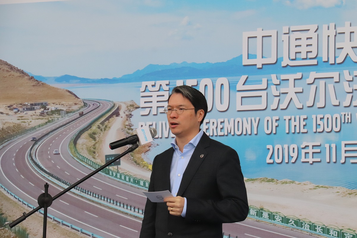 11月18日,上海——作为全球领先的卡车品牌,沃尔沃卡车向中通快递集团交付了第1500台卡车,开启了双方多年坚实战略合作的新篇章。沃尔沃卡车全球总裁Roger Alm、沃尔沃卡车中国区总裁董晨睿、中通快递集团常务副总裁兼执行董事赖建法,中通快递集团运营管理中心总监王全法等双方高层出席了于中通上海总部举办的交车仪式,共同见证这一里程碑时刻。
