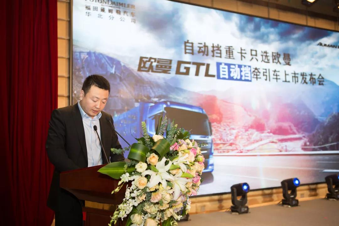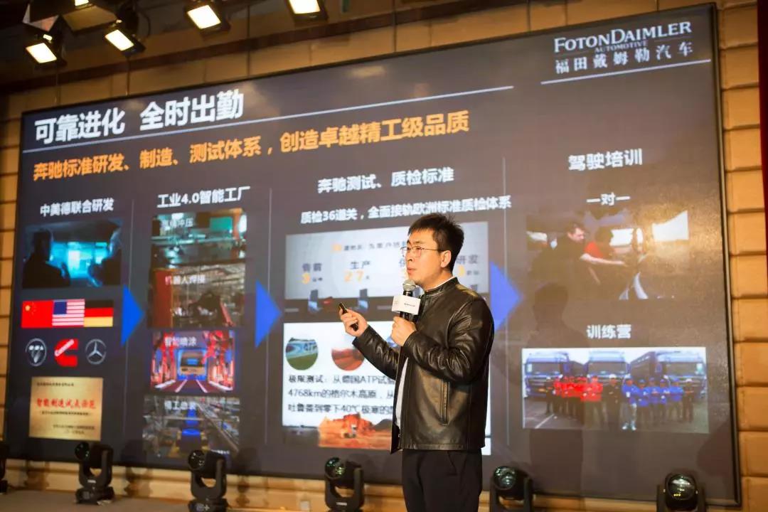 福田戴姆勒汽车华北分公司市场部渠道运营支持经理宋志强讲解欧曼GTL自动挡产品