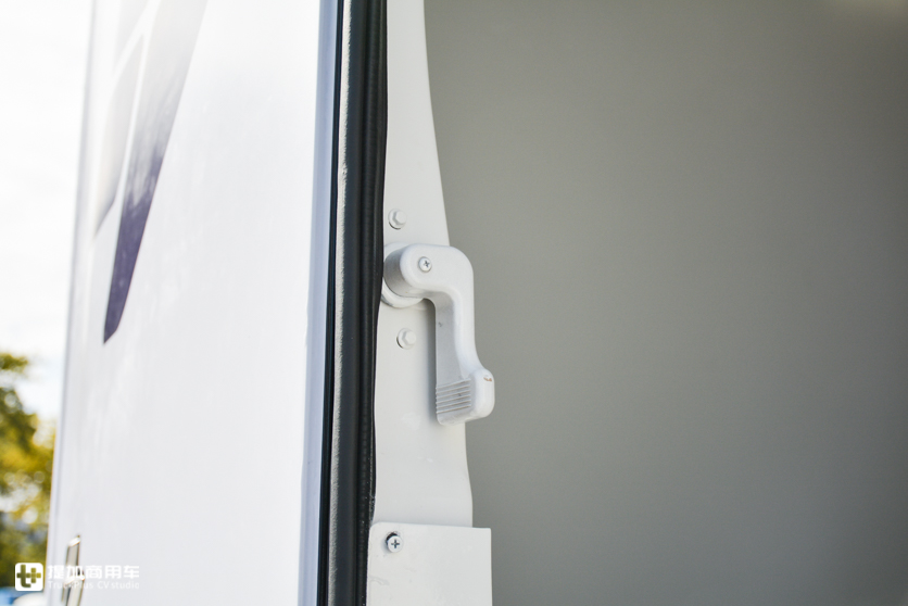 有了2300mm宽车身基础,ER600的货厢容积做到了18m³。货厢没有侧门,尾门开启方式和VAN类似,拉一下门把手就能打开右门,再扳一下左门上的把手便能打开左门,两个门的开启角度都达到了270°,尾门开启比较方便。