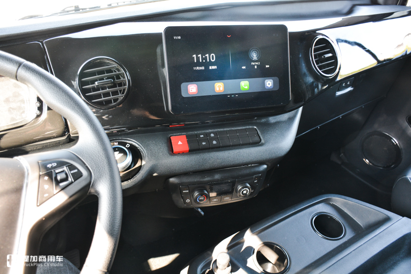 中控台设计采用乘用车化环式设计,以驾驶员为中心布置操控区域。多功能方向盘上设有定速巡航控制按钮和多媒体控制按钮。