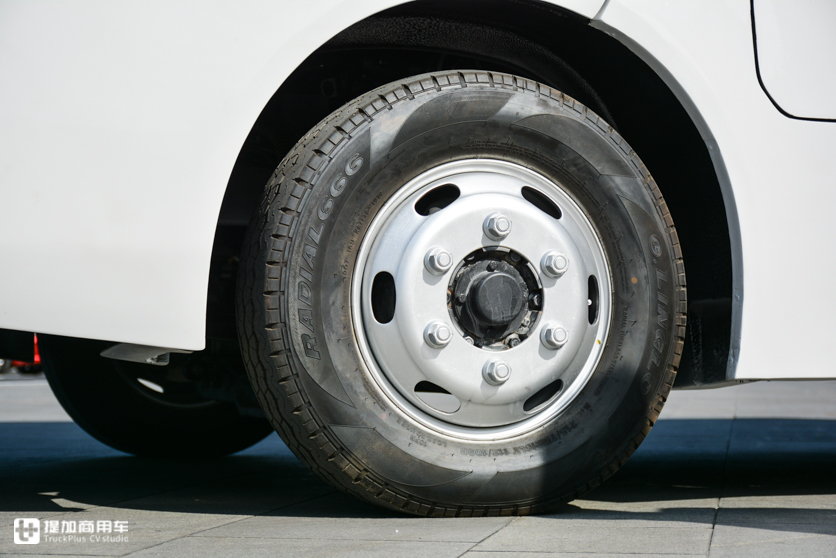 其次是车辆轴距要长一些,一般6米长的轻卡轴距在3300-3360mm之间,ER600的轴距达到了3460mm,更长的轴距使得ER600后悬更短,车轮分布更接近整车4个角落,视觉效果上也就感觉没有那么长了。