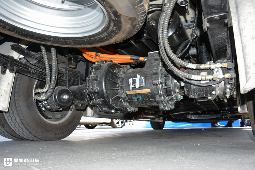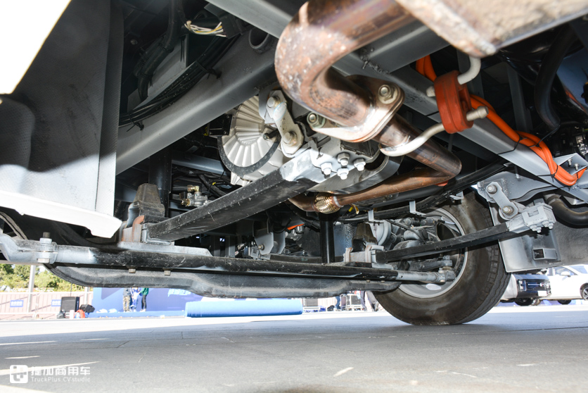 根据现场两辆展车来看,ER600能提供多种悬架形式,一种是传统的多片钢板悬架,另一种则是更加轻量化的复合材料制成的单片弹簧悬架。刹车系统采用双回路气压制动+盘式制动器的设计,刹车脚感设定的比较柔和、线性。