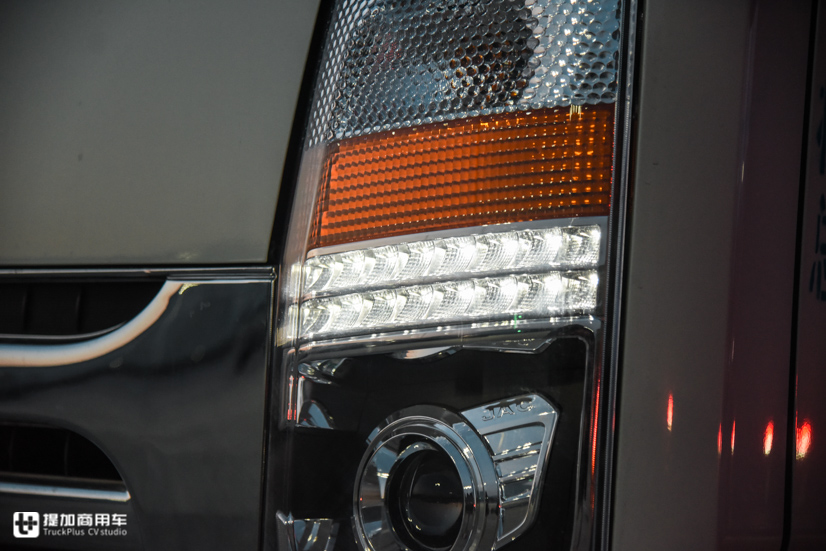 驾驶室设计就是放大号的帅铃轻卡,标配LED日间行车灯,大灯带透镜,可以选装氙气大灯。