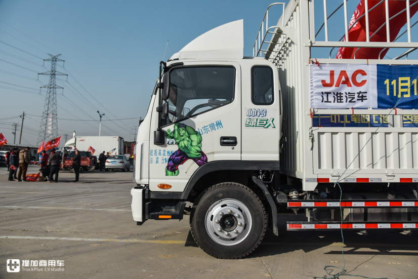 帅铃“绿巨人”是江淮为绿通运输定制的一款轻卡,之所以说是定制,是因为帅铃“绿巨人”尺寸比蓝牌轻卡大,货箱长度又比常见的6.8米中卡短,定位介于蓝牌轻卡和中卡之间,需要上黄牌,总质量14.06吨,载重量10吨左右。