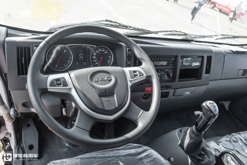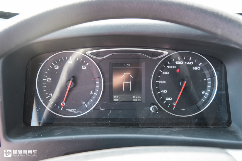 仪表盘造型特别简洁,有点大众乘用车的风格,多余的信息都在中间的单色显示屏内显示。仪表盘有个智能语音提醒功能可以单独提一下,比如打开车门,它会提示“车门未关”,比单纯的警示音提醒效果更好。