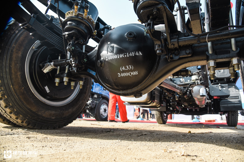 前桥规格3吨,后桥规格7.2吨,重载型的后桥可满足承载需求。对应的钢板悬架都是多片簧钢板,拉10吨货绝对没压力。可选3.909、4.33、4.875三种不同后桥速比。