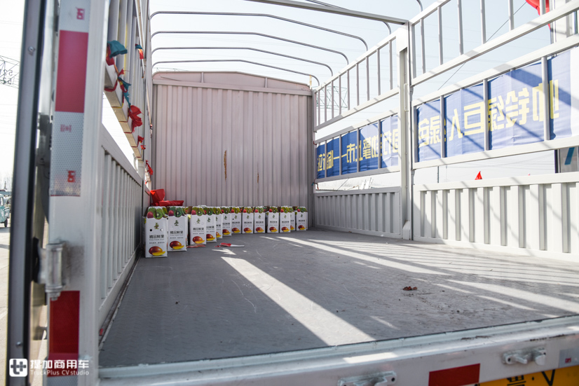 根据调研,一些绿通运输客户对车辆灵活性要求很高,车子太长一些果园、菜地进不去,“绿巨人”5.2米货箱是比较合适的长度,同时在批发市场里面摆摊批发,也更加的灵活方便。货箱尺寸设定上也有讲究,“绿巨人”仓栅货箱长x宽x高5.25x2.47x2.4米,摆放0.35x0.46x0.2米的果篮宽刚好可放7个,长可放11个,一层可以放77个果篮,总共能放12层,累计924个果篮,空间利用到了极致。