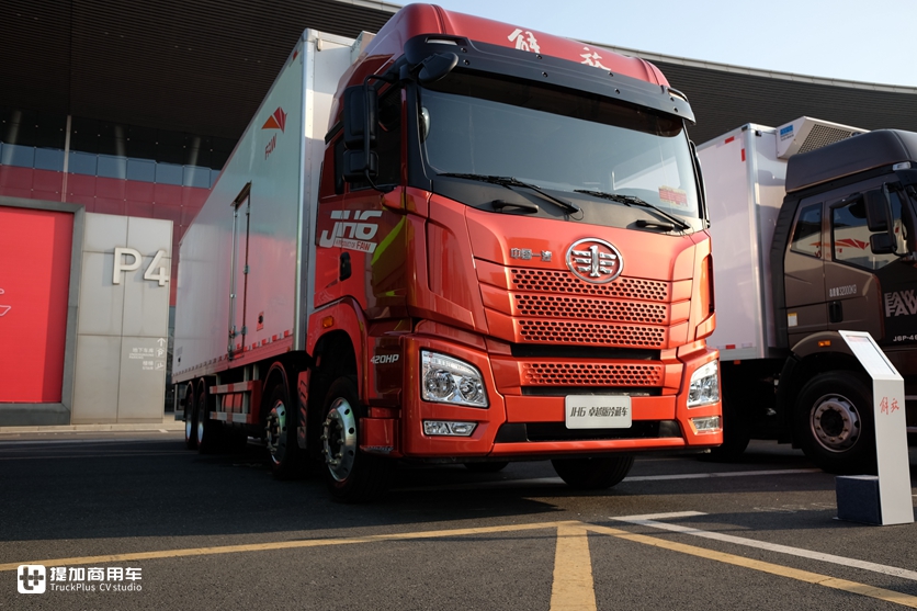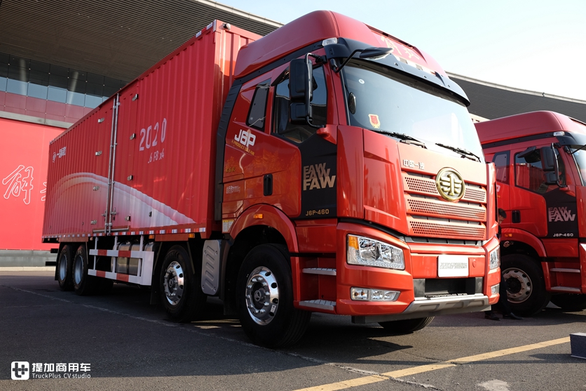 解放J6P载货车推出2020款车型,采用了新材料、新工艺、新结构,8x4车型底盘自重轻至9.4吨,前轴采用新F5N车桥,后桥采用435冲焊桥,前后都是康迈免维护轮端,50万公里维护周期。外观方面标配高强度发光鹰标和LOGO投射灯。