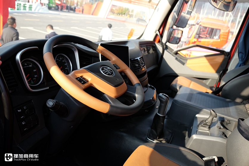 不过车内空间保留的还挺好,并没有因为驾驶室高度降低而变得局促,平地板驾驶室功不可没。内饰的配置依旧很朴素,仪表盘还是第一代J6P造型,功能都是最基础的配置,一切都以实用为主。