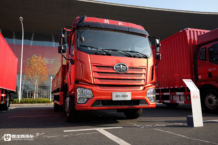 之前在网上关注度比较高的JK6载货车在本次年会现场首次公开亮相,全新开发的中卡驾驶室前脸保留了解放卡车家族式设计元素,具有比较高的辨识度。