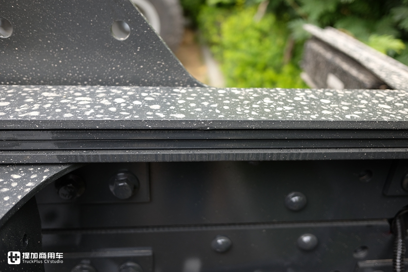 以600马力版本为例,底盘配置十分丰富。前桥盘式制动器,康迈免维护轮端,威伯科制动阀,全系升级法士特S系列变速箱,型号C12JSDQXL260TA,换挡更轻便。800+500升超大油箱实现超长续航里程,蓄电池后置为底盘两侧腾出空间。
