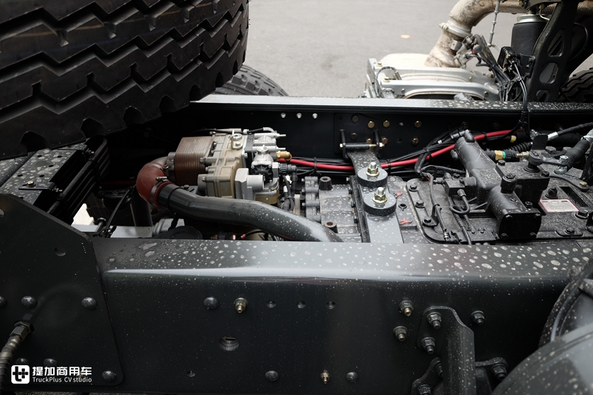 值得一提的是这款自卸车适配了法士特液力缓速器,长下坡可以辅助车辆减速,对于重载自卸车来讲能提升行车安全性。