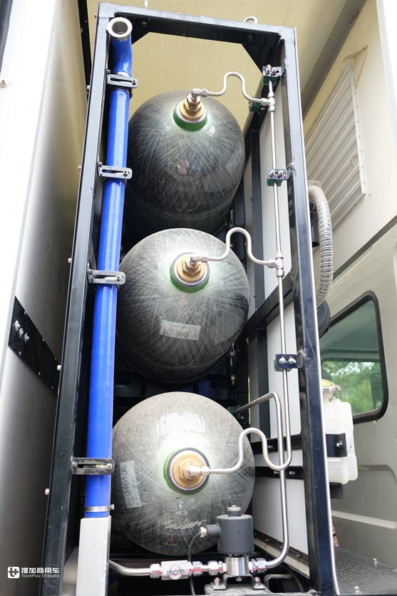 3个氢气瓶总容积420升,储氢压力35Mpa。续航里程≥450公里,续航能力比普通的纯电动轻卡强许多。