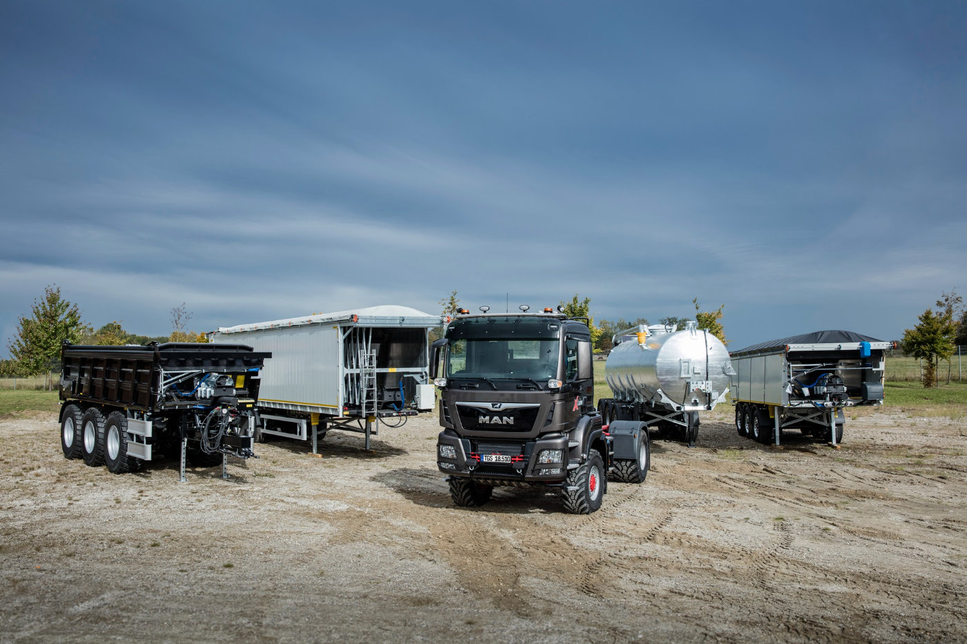 TGS和TGX牵引车可以安装罐式半挂车,用于运输浆料、发酵基质等液体废弃物。此外,还可以安装仓式挂车用于运输肥料和动物饲料。除此之外,还可安装移动式研磨机和食品搅拌系统,底盘可根据上装设备的尺寸以及研磨设备、搅拌设备、螺旋输送机和输送带所需的PTO输出进行选择。