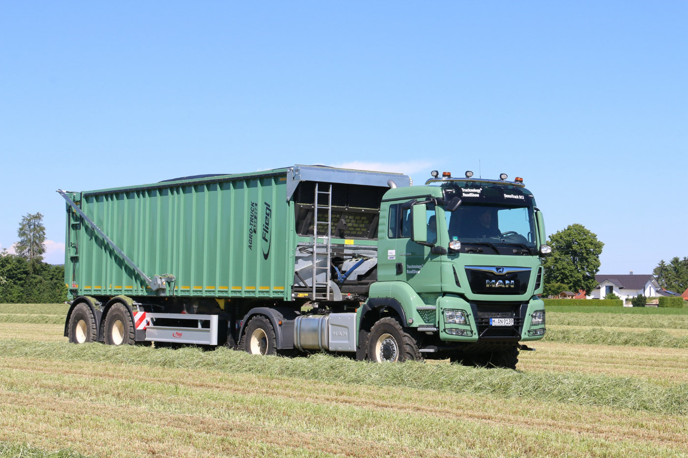 TGS 18.510 4x4 BLS半挂牵引车配备全轮驱动。加上采用对土壤无害的农用宽体轮胎,前轮尺寸445/65 R22.5,后轮尺寸600/50 R22.5,卡车宽度能保持在2.55米,能轻松穿越乡间小路、草地及农田。安装在变速箱上的中央差速器在卡车转弯时能够保证前轴和后轴之间的平衡,从而避免对农作物造成损害。田间作业的机器和卡车之间可实现直接的负载传送,不仅能避免收割过程及田间作业的间断,还能大大缩短行驶距离。