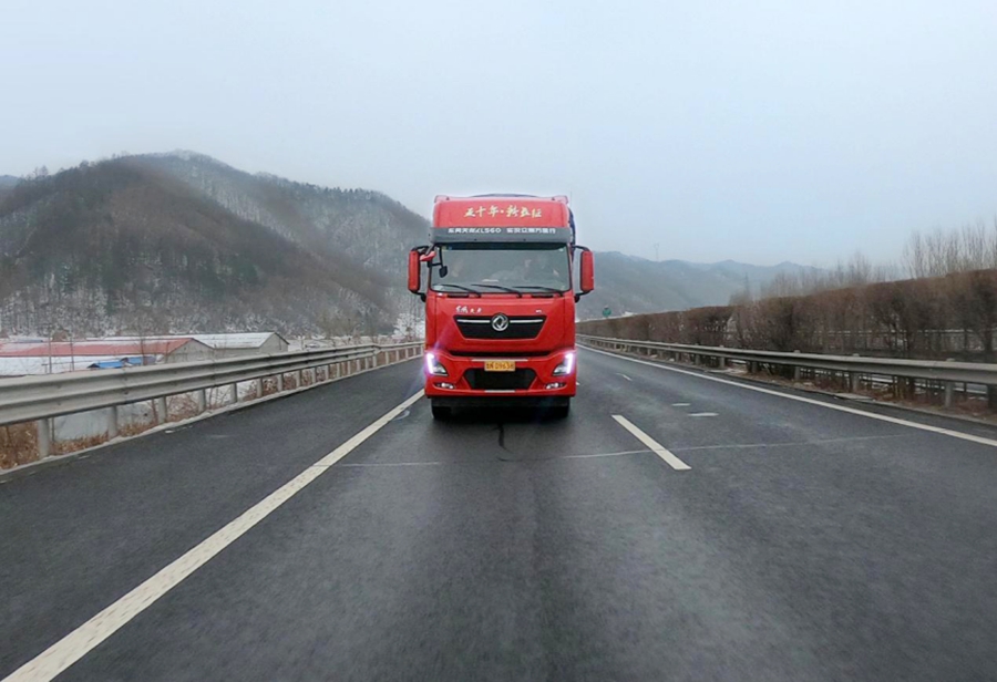 东风天龙KL560实况众测的最后一条路线为东北线,活动进行到此,气候也骤变。在这个时候挑战东北线,也可见众测先锋孟繁柱的勇气。孟繁柱是黑龙江人,尽管家乡在东北,但因为在外地跑车,回家的次数并不多。