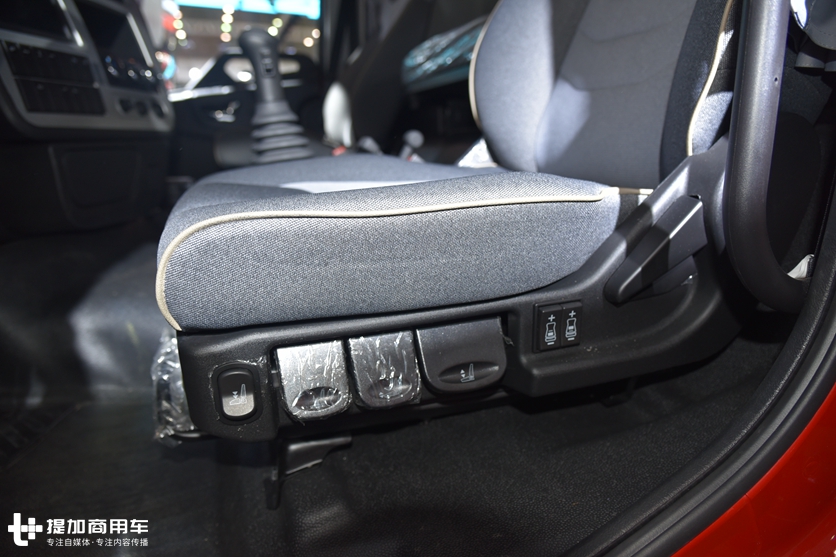 气囊悬浮座椅继续保持了一键充放气、阻尼调节、高低调节功能,并且新加入靠背支撑两段式调节功能,可分别在腰部和背部做出适合驾驶员身形的角度,有效降低长途驾驶中的疲劳感。