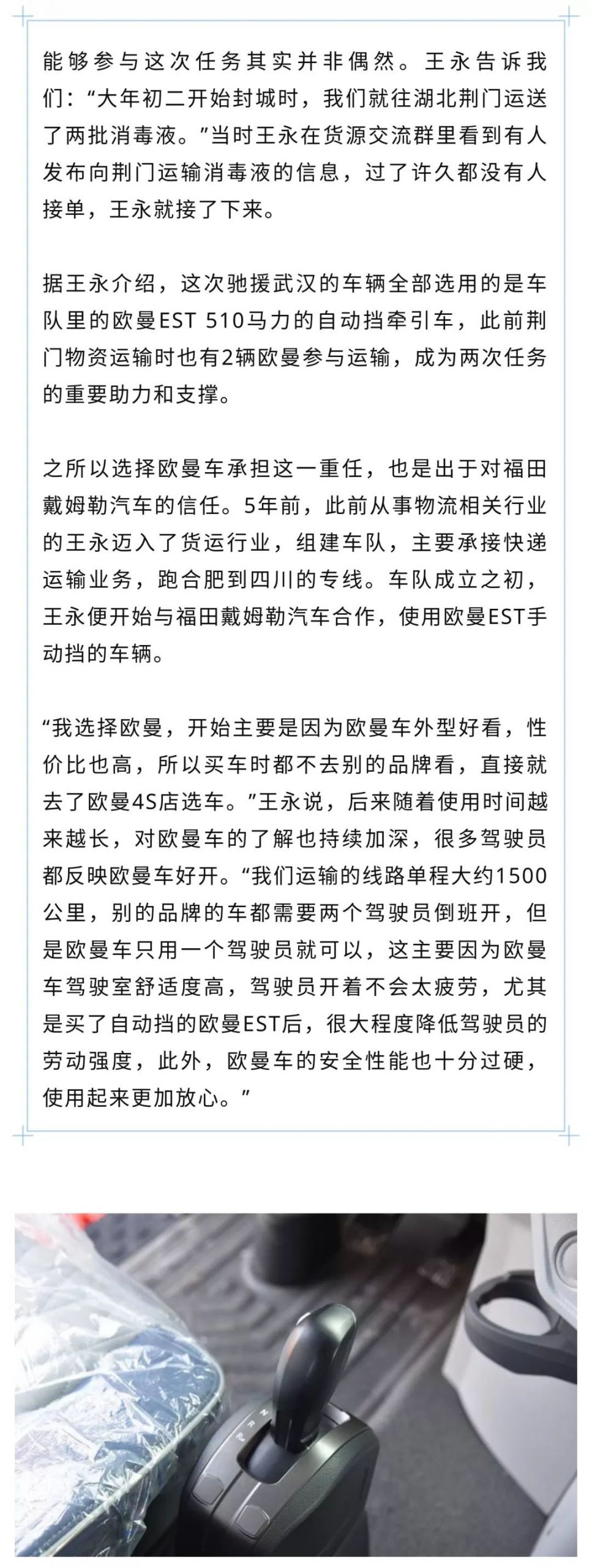 驰援武汉,是每一位运输人应该做的事 编辑张靖 卡车2020年2月4日 10:507.84W0 欧曼重卡(77)福田戴姆勒汽车(110)本文来源福田戴姆勒汽车,经授权后由编辑张靖发布,观点不代表提加商用车网的立场,转载请联系原作者。编辑张靖提加商用车小编,还请大家多指教!6.22K941.23M39.63W