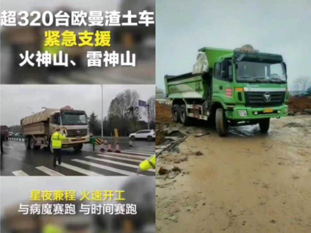 【欧曼渣土车支援火神山、雷神山医院建设】