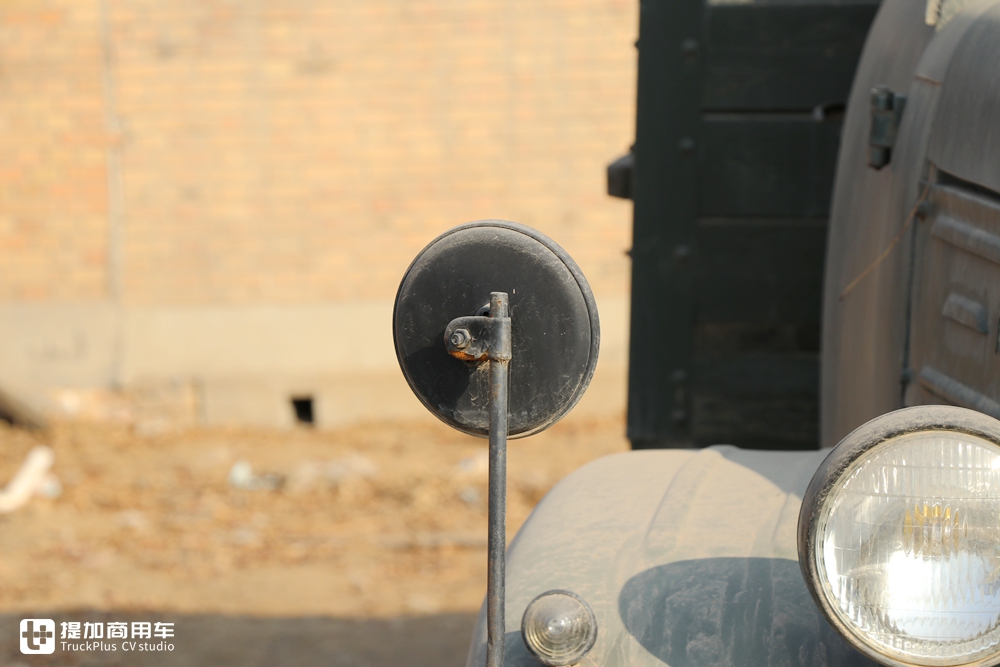 查阅了许多关于南京嘎斯的影像资料,资料中的车后视镜不是在门上就是插在翼子板上,而这辆车却是固定在保险杠上的,有可能是副驾驶门镜丢失,这块后视镜为副镜,用来观察更多车辆盲区使用的。