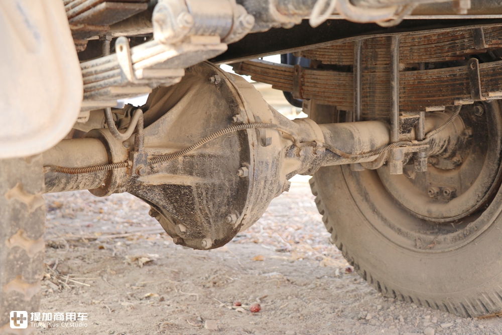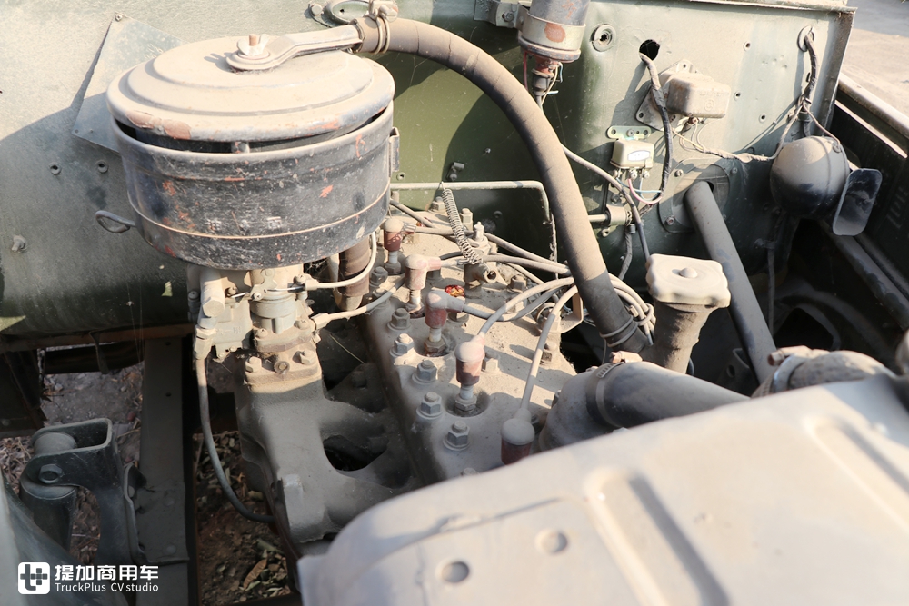 后桥是单级减速桥,看着这个小牙包和相比现在纤细的半轴管以及成摞的钢板,这个车的承载能力可想而知。在命名中,这辆车的载重范围是2.5-3吨级别,而且刹车也不是靠压缩空气。