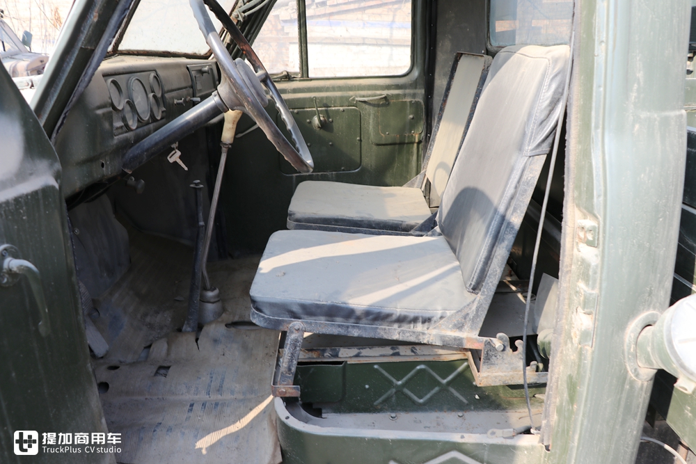 驾驶室内设有两个座椅,采用革包裹,上面积满了灰,这么多年也老化的差不多了。