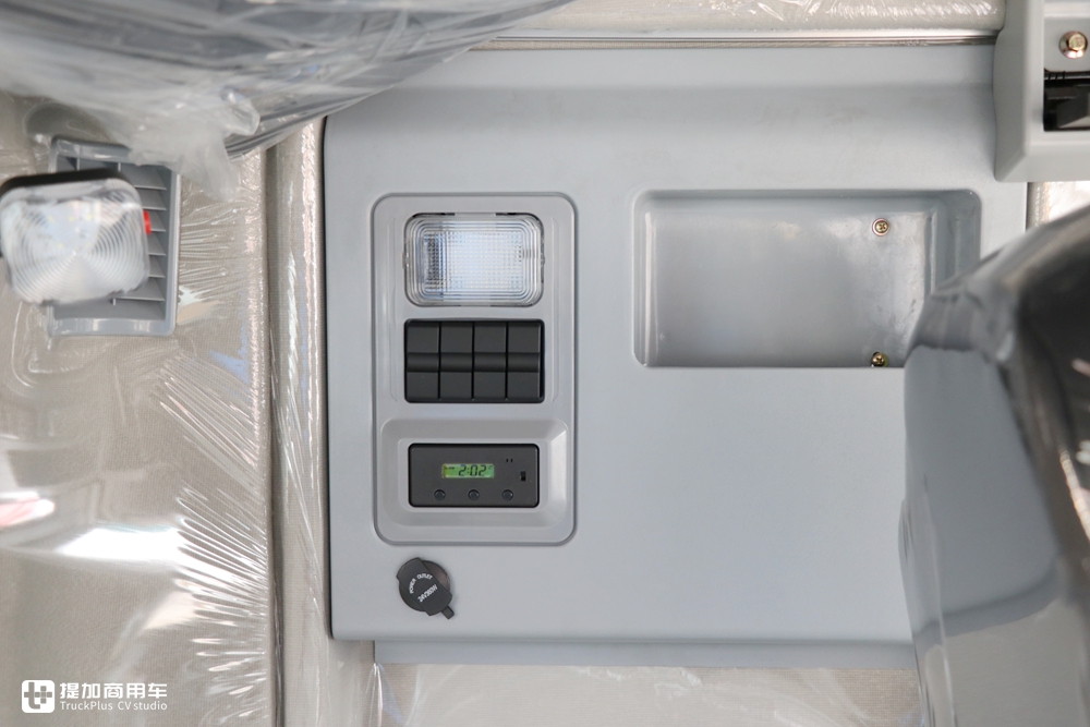 高顶驾驶室的空间利用的很合理,上面共设有5个储物柜,可以满足日常行车对储物的需求。
