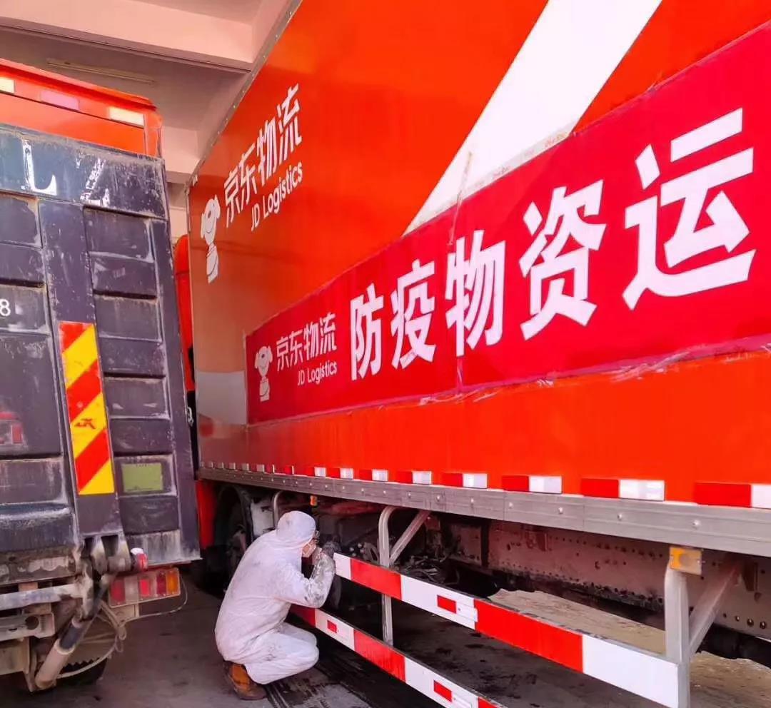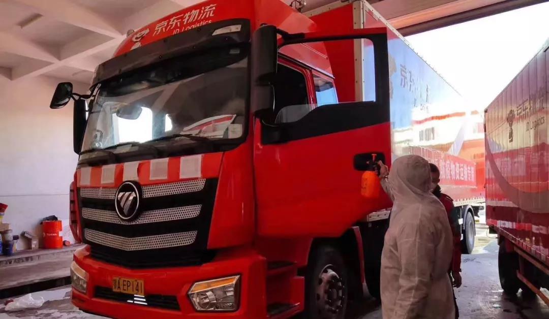 以欧曼超级重卡为主要运力的京东物流高效运行,承担起疫情期间防疫物资及民生物资配送,为了保证物资运输的全程无忧,欧曼服务人员不惧疫情,亲临运输一线为运输车辆进行消毒处理,以及车辆保养和检测,保障运输人员的人身安全,以及疫区人们急需的物资安全高效送达。