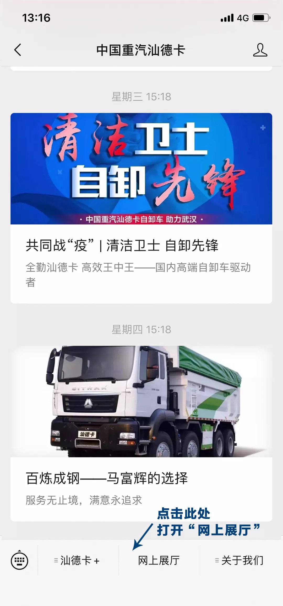“中国重汽汕德卡网上展厅”上线啦!卡友们足不出户即可看车、选车