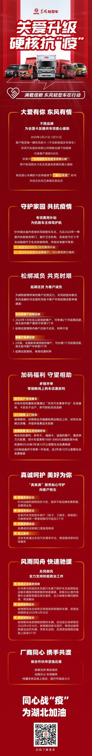 爱心义捐、延期还贷、线上购车齐上线 ,东风轻型车一系列优惠来袭 编辑张靖 企业快讯, 卡车2020年2月25日 11:249.37W0 东风轻卡(95)延期还贷(1)本文来源东风轻型车,经授权后由编辑张靖发布,观点不代表提加商用车网的立场,转载请联系原作者。编辑张靖提加商用车小编,还请大家多指教!6.22K892.92M39.57W