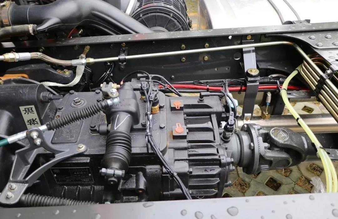 与之匹配的变速箱为法士特8挡8JS105TA变速箱,最大输入扭矩为1050N.m,头挡速比为8.08;最高挡8挡速比为0.72,可以兼顾起步、高速行驶时的动力需求。