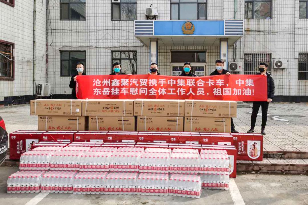 鑫聚汽贸的工作人员在忙于捐赠工作,而博众物流的工作人员则奔波于物资运输保障的第一线。2019年3月,鑫聚汽贸申请取得了联合卡车沧州总代理的资质,其兄弟单位博众物流也批量购置并使用了联合卡车,在这次支援行动中,联合卡车无疑成为了运输主力。
