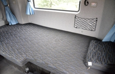 驾驶室后围凸起设计,车内空间加大,上下卧铺加宽至少150mm,排半驾驶室车型下卧铺最宽可达1010mm,完全满足长途行驶情况下司机的休息需求,让夫妻出行的司机朋友们尽享“大床房”感受。